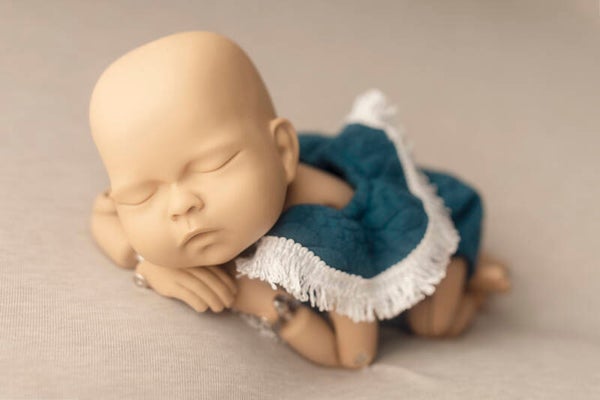 Parmi eux : une minuscule barboteuse à col frangé, cousue dans une étoffe bleu nuit, gardienne d’un éclat de rire ancien.